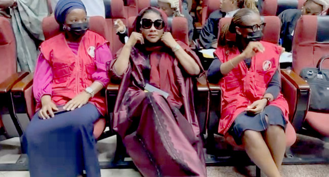 Her arraignment comes a day after she was arrested by EFCC operatives at the Nnamdi Azikiwe International Airport, Abuja shortly after she returned from London and was subsequently taken into custody.