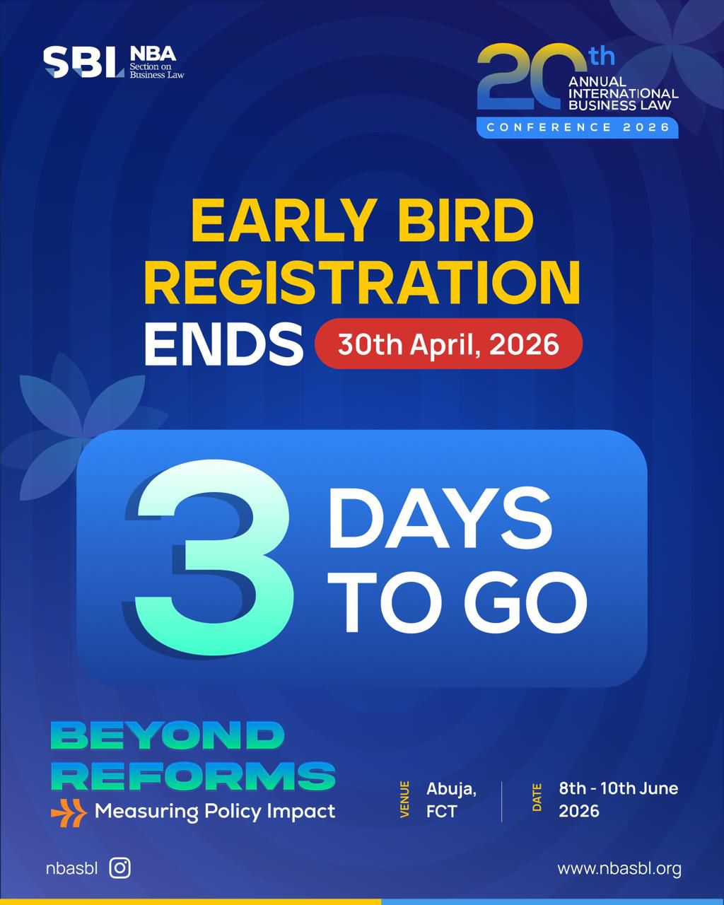 Organizers emphasize that early registration not only guarantees a spot at the highly anticipated conference but also allows attendees to plan ahead for what promises to be a series of insightful discussions shaping the future of business law in Nigeria and beyond. Interested participants are encouraged to review the registration schedule and complete their sign-up via the official conference portal: [https://conference.nbasbl.org/](https://conference.nbasbl.org/).