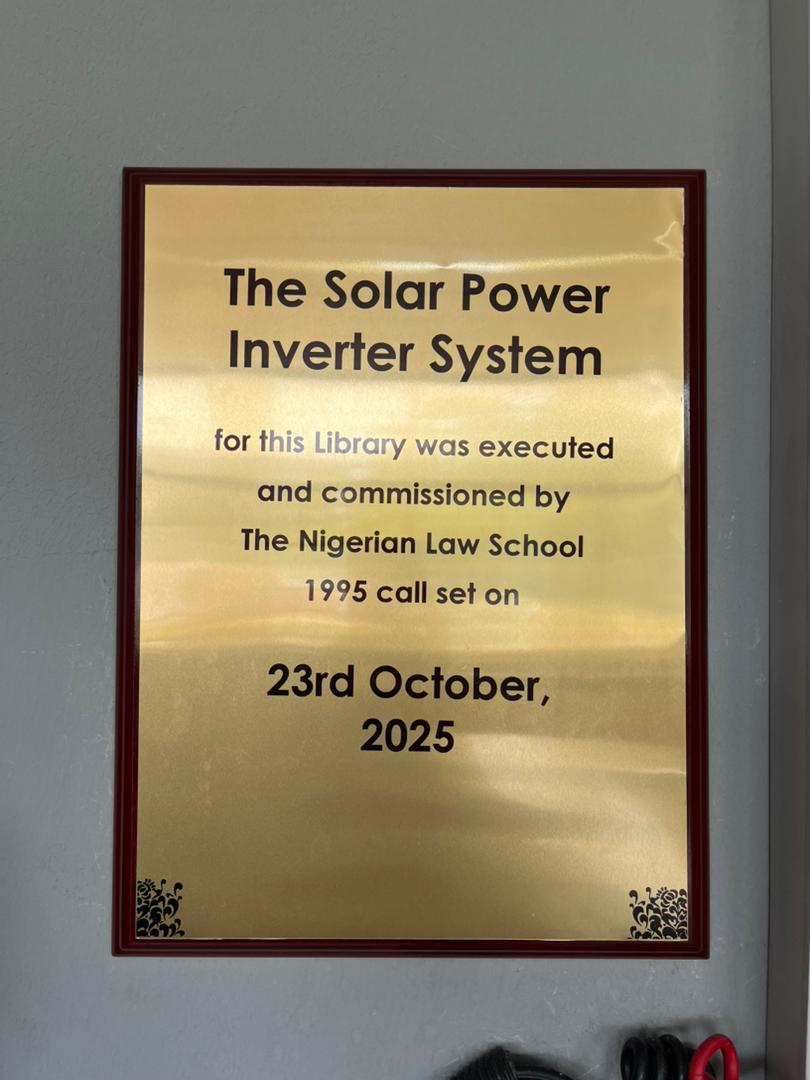 As part of the weeklong activities commemorating the 30th Anniversary of the 1995 Call to the Bar, the Nigerian Law School Class of 1995 proudly commissioned a Solar Inverter System Project at the Law Library, Lagos Campus.