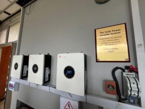 The Solar Inverter System is specially designed to support the Library’s off-peak energy load, thereby reducing reliance on the public power grid and cutting operational costs. The installation supplies electricity to LED lighting, sockets, printers, laptops, computers, and fans in both the Library and staff offices, excluding air conditioners. The power source operates on a prioritization model of Solar → Grid → Generator, with a generation capacity of 50,000 watts (50 kW). The system is scalable, allowing for future expansion, and functions optimally between 9:00 a.m. and 4:00 p.m., which corresponds with the Library’s busiest hours.