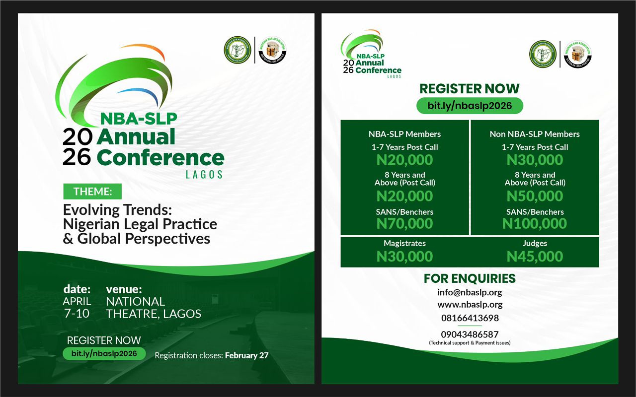 Now is the perfect time to secure your spot at the NBA-SLP 2026 Annual Conference, taking place in Lagos, Nigeria, from 7–10 April 2026.