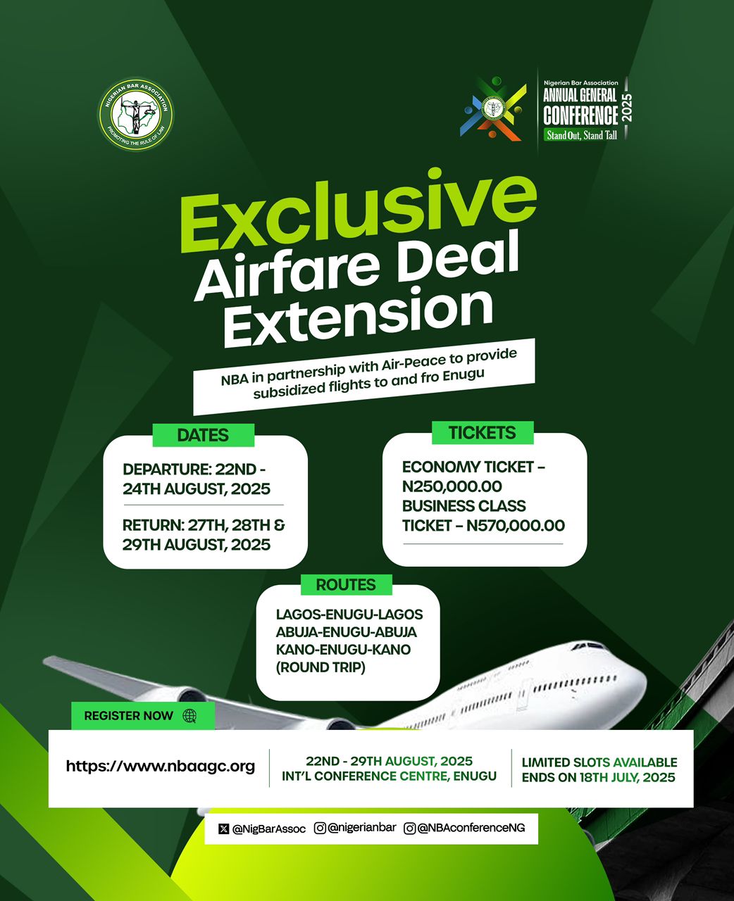 The NBA has graciously pleaded with Air Peace for further extension to allow conferees take advantage of the subsidized Air fare.