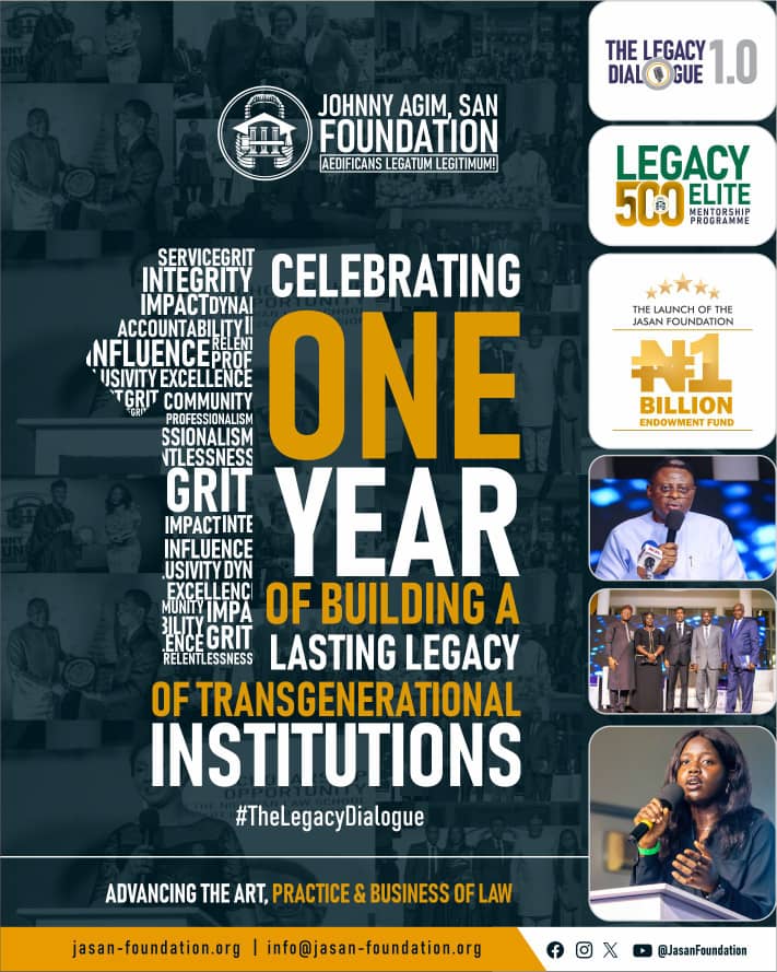 The Johnny Agim, SAN Foundation (“JASAN Foundation”) is a non-profit organisation dedicated to the Mentorship, Sponsorship, Reforms, and Advocacy (MSRA) vision within the Nigerian legal profession. Its mission is to build a lasting legacy by supporting and developing future generations of legal professionals through strategic initiatives and partnerships.