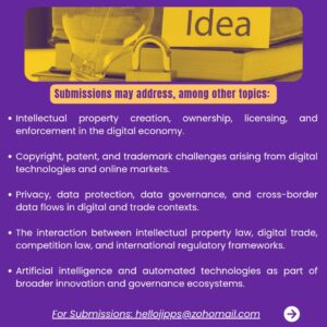 We welcome scholarly and practice focused contributions examining intellectual property, technology regulation, data governance, platform markets, and cross border legal challenges in a rapidly evolving digital landscape.