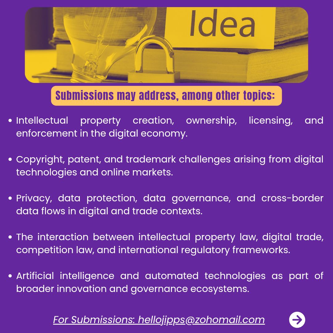 #IntellectualProperty #TechnologyLaw #DigitalEconomy #GlobalTrade #PrivacyLaw #DataGovernance #AIandLaw #IPLaw #TechPolicy #InnovationLaw #JIPPS