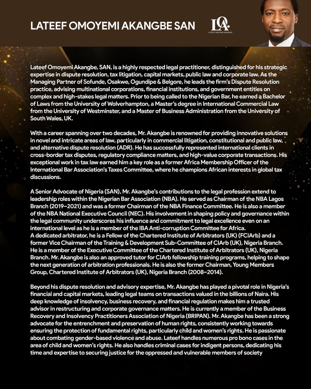 With an illustrious career spanning over two decades, Lateef Akangbe, SAN, has carved a reputation as a thought leader, mentor, and tireless advocate for justice. From dispute resolution and corporate advisory to championing human rights and mentoring the next generation, his voice continues to shape the future of the legal profession both within and beyond Nigeria.