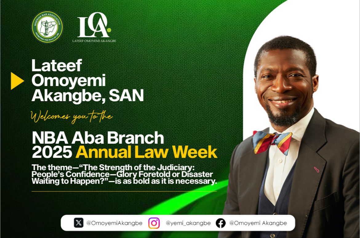 In continuation of activities marking the 2025 Law Week of the Nigerian Bar Association (NBA), Aba Branch, legal practitioners in the city will this evening engage in an interactive hangout session with renowned Senior Advocate of Nigeria, Lateef Omoyemi Akangbe, SAN.