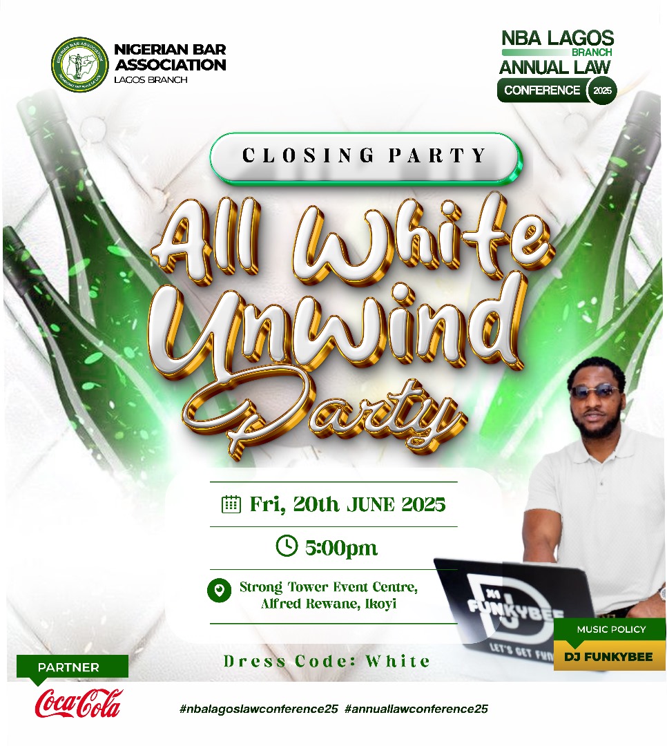 The Nigerian Bar Association (NBA), Lagos Branch, brought its week-long conference to a thrilling close on Friday, June 20, 2025, with a vibrant closing party held at the Strong Tower Event Centre, Alfred Rewane Road, Ikoyi, Lagos. The event served as a perfect finale to a busy week of intellectual engagement, networking, and professional development.