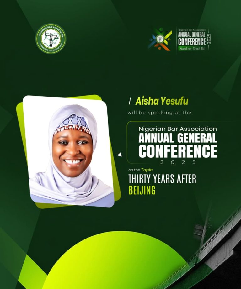 The Nigerian Bar Association (NBA) has announced that Aisha Yesufu, renowned socio-political activist and co-founder of the #BringBackOurGirls movement, will feature as a panelist at the breakout session titled “Thirty Years After Beijing” during the NBA Annual General Conference 2025. The session is scheduled for Monday, 25th August 2025, from 3:00 PM to 4:30 PM at the International Conference Centre, Enugu.