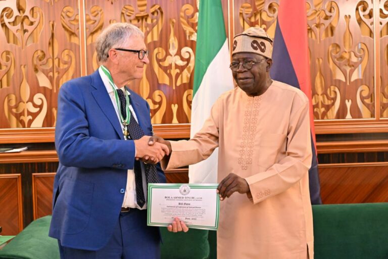 President Bola Tinubu, on Tuesday, conferred the national honour of Commander of the Order of the Federal Republic on American billionaire philanthropist and Microsoft co-founder, Bill Gates, in Lagos.