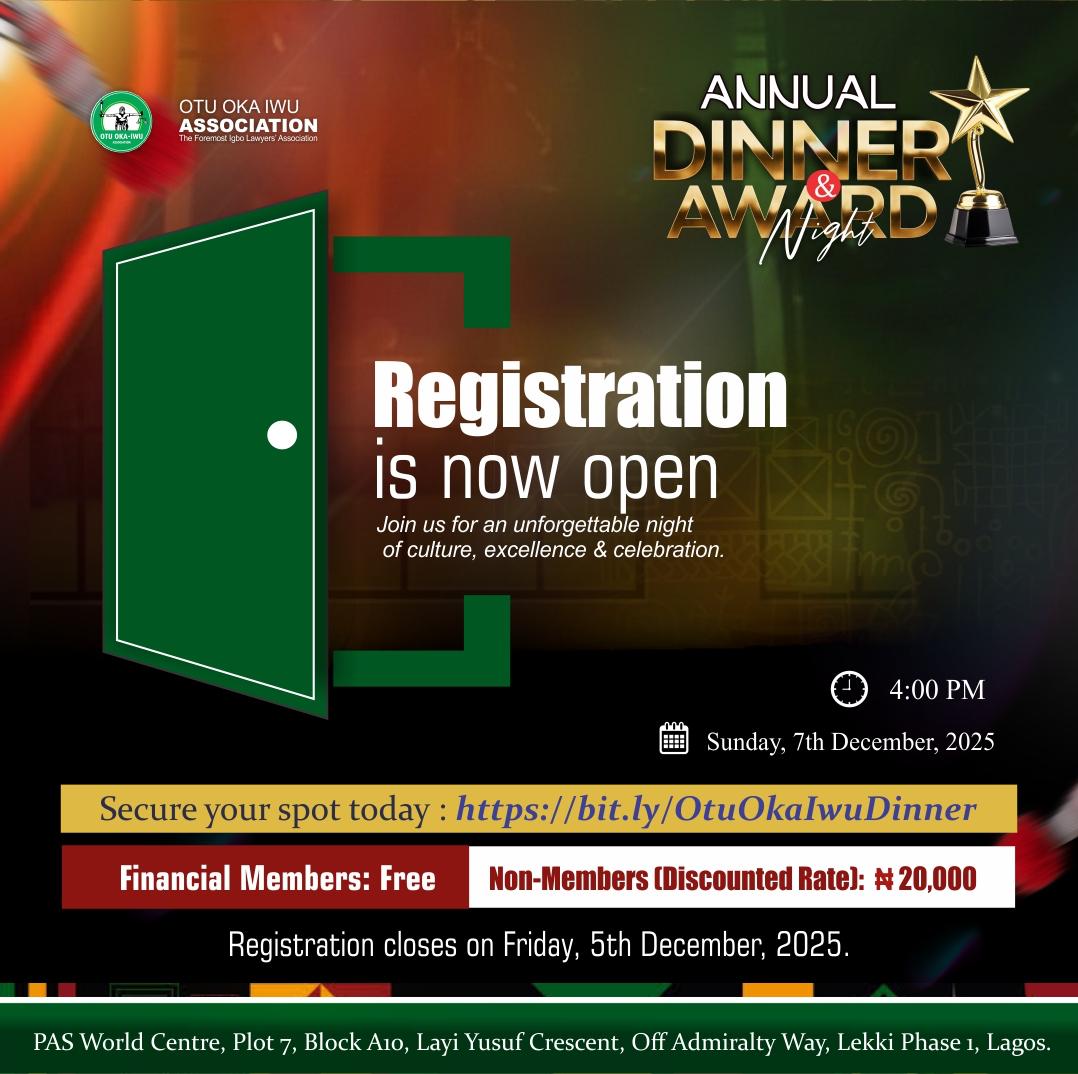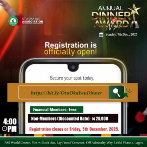 We’re excited to open registration for our Annual Dinner & Award Night, happening on Sunday, 7th December 2025 at PAS World Centre, Lekki Phase 1, Lagos.