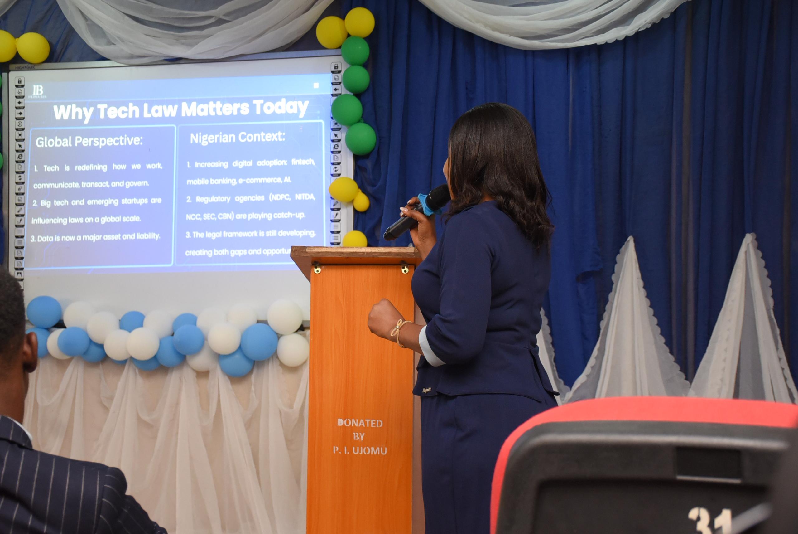 While she highlighted the immense potential in tech law, Ms. Ben also provided a sobering view of the challenges. She pointed to the lag in regulatory frameworks compared to the pace of innovation, the complexities of cross-border digital operations, ethical dilemmas in artificial intelligence, and the limited exposure to tech law in many Nigerian legal curricula. She noted that while these challenges are real, they also offer bold young lawyers a chance to lead, shape, and reform the legal landscape.