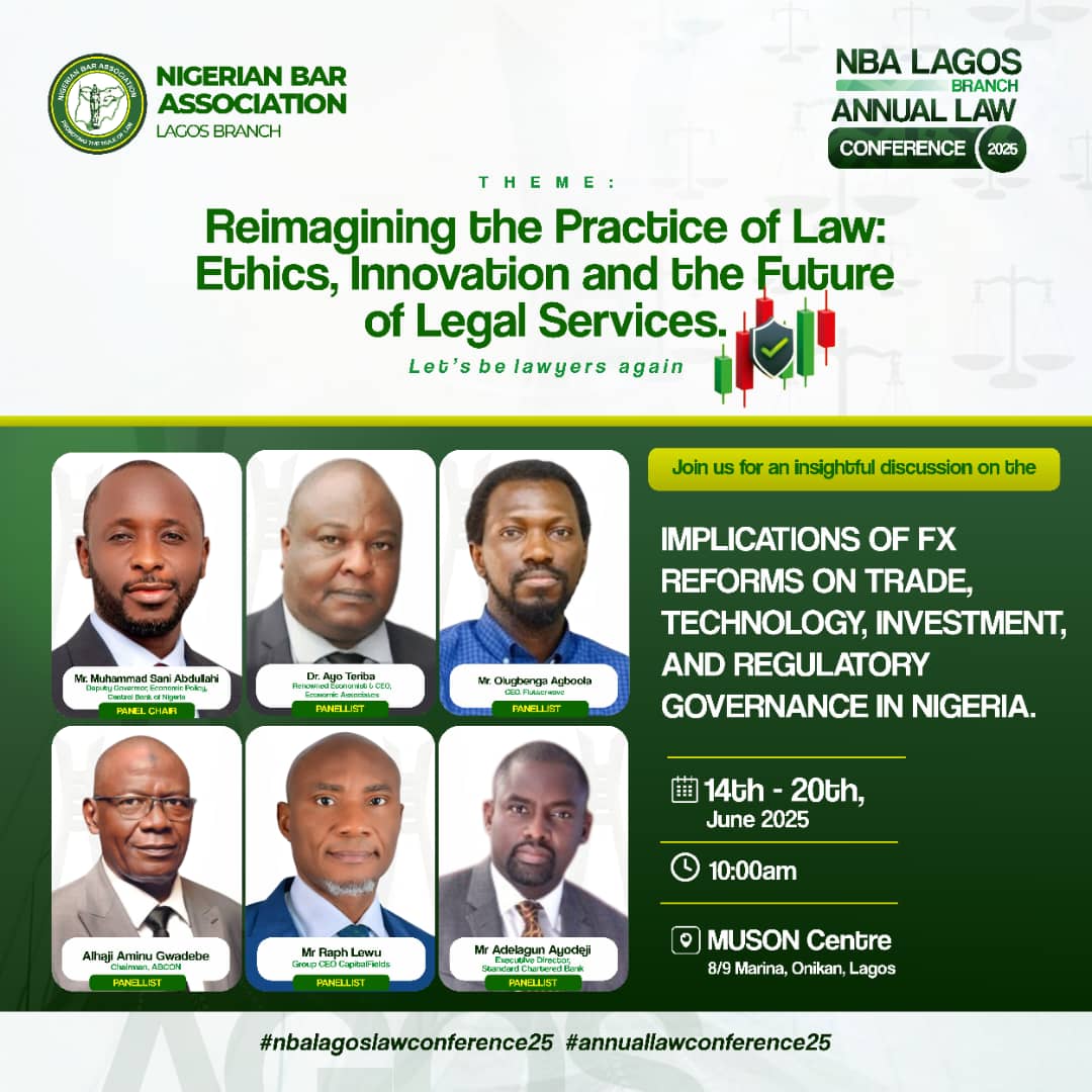 The NBA Lagos Branch Annual Law Conference 2025 will feature an important discourse on “Implications of FX Reforms on Trade, Technology, Investment and Regulatory Governance in Nigeria”