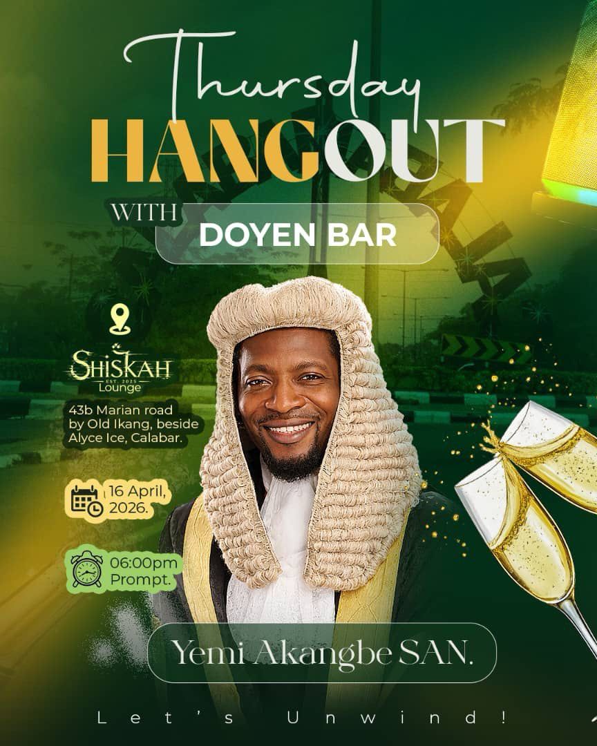 Legal practitioners and professionals are set to converge in Calabar this Thursday for an exclusive hangout session with Senior Advocate of Nigeria, Yemi Akangbe, in what promises to be an evening of meaningful engagement and professional networking. The event, scheduled to hold at Shiskah Lounge, is designed to provide a unique platform for colleagues within the legal community to interact with the respected silk in a relaxed and informal setting.