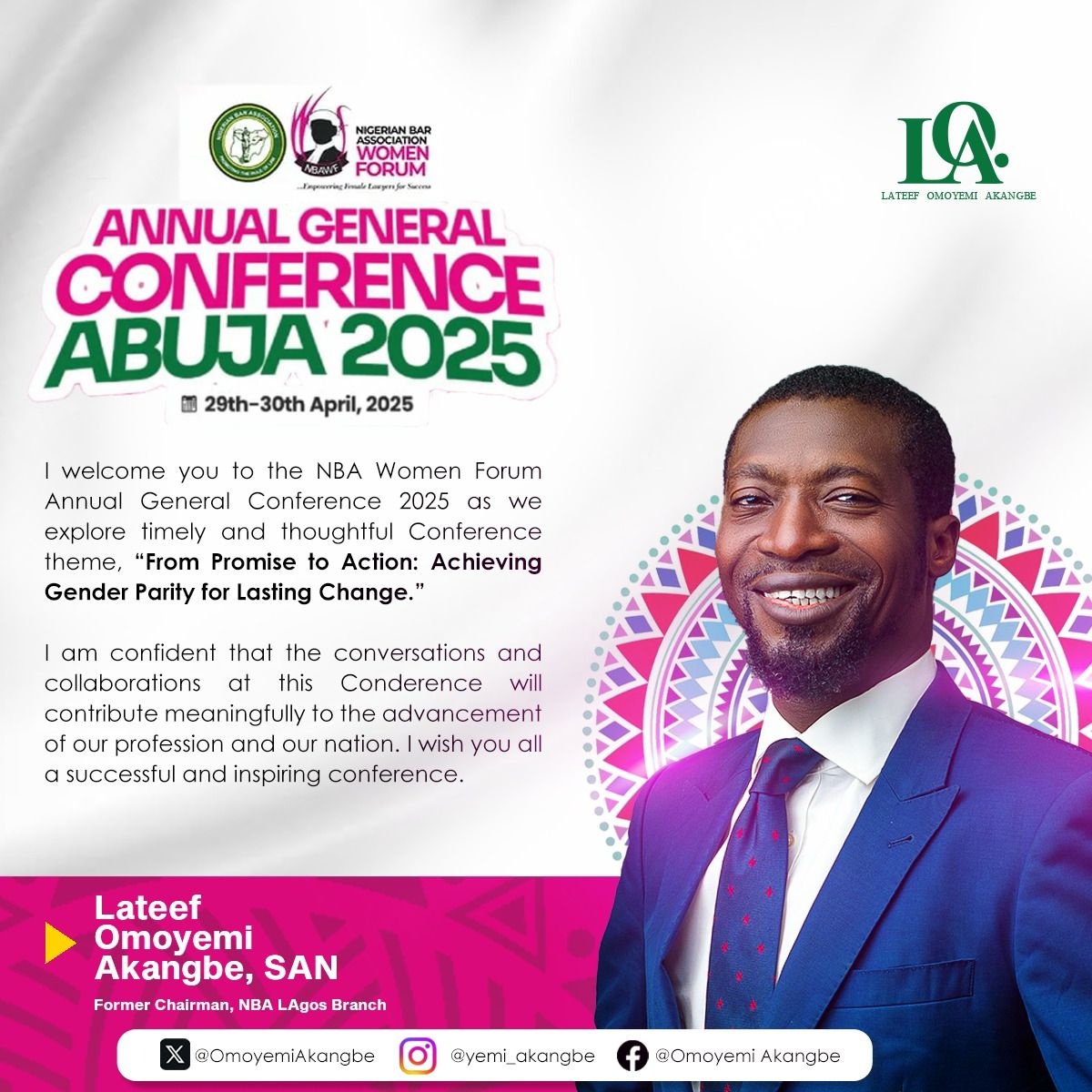 I commend the Nigerian Bar Association Women Forum and its Conference Planning Committee for leading this charge with such purpose and courage. May this gathering inspire transformative conversations and lay concrete steps toward achieving true gender parity.