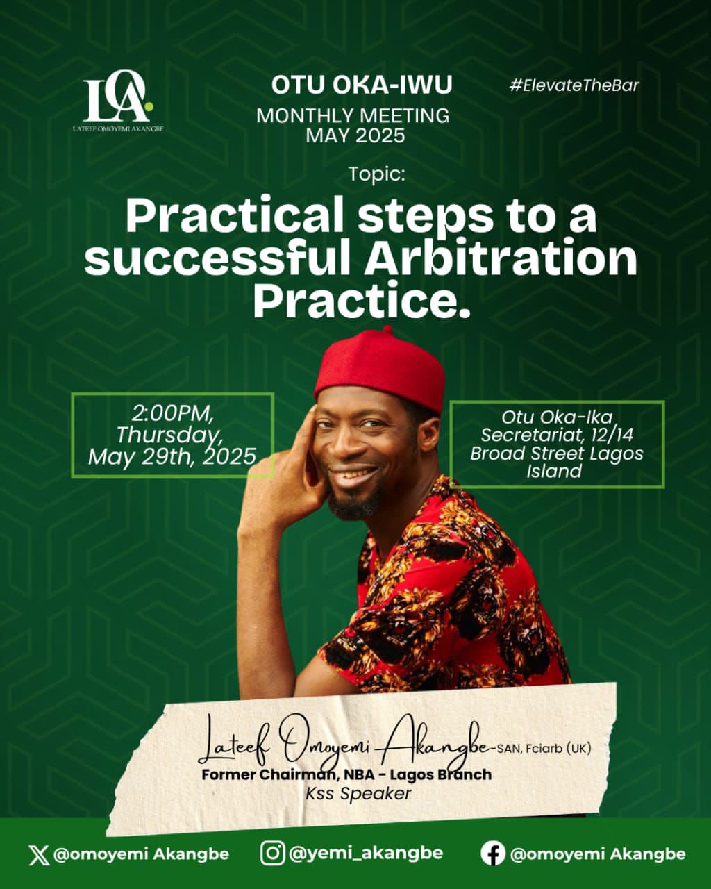 It promises to be a rich and engaging session, where we will explore the mechanisms of arbitration and examine how it is reshaping dispute resolution and legal advocacy in Nigeria and beyond.